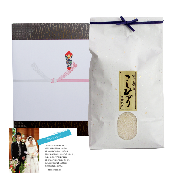 結婚祝いのお返しのお米は、メッセージカード付です。